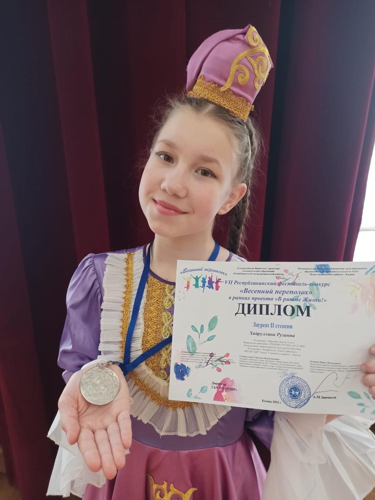 17 апреля солистка хореографической студии «Чишмэ» Рузанна Хайруллина приняла участие в Республиканском фестивале конкурсе «Весенний переполох» и стала Лауреатом 2 степени.Поздравляем!!!
