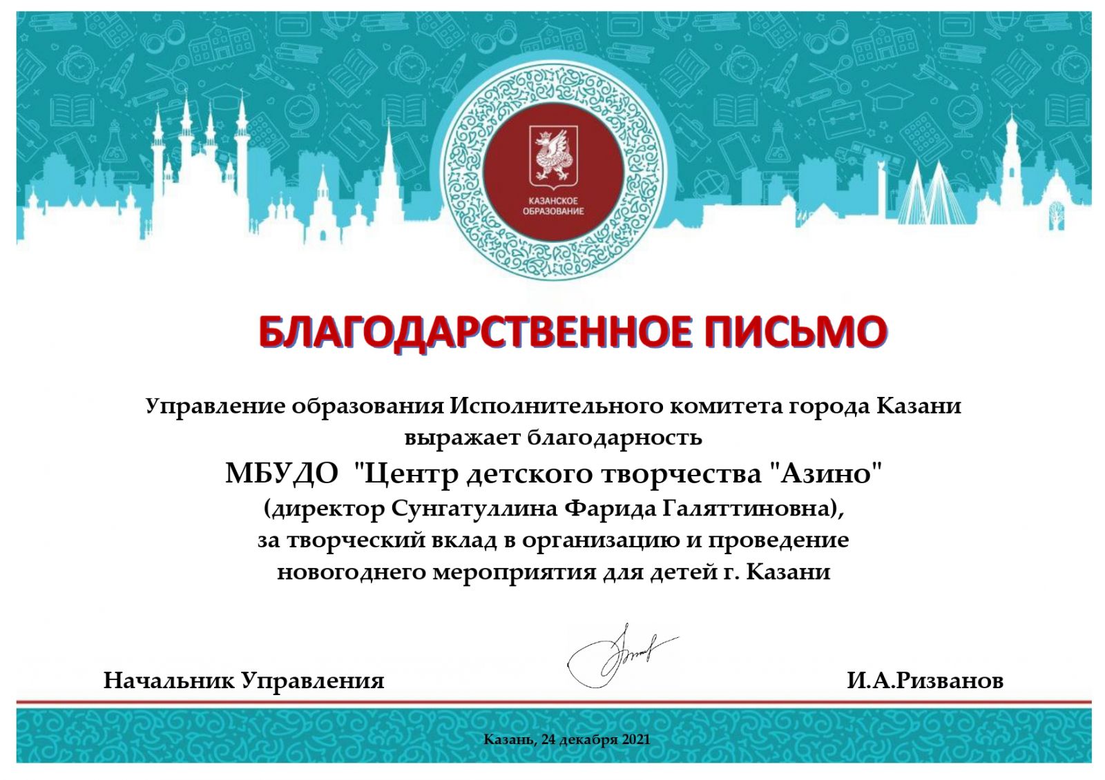 Муниципальное бюджетное учреждение дополнительного образования «Центр детского творчества «Азино» Советского района г. Казани» - новости