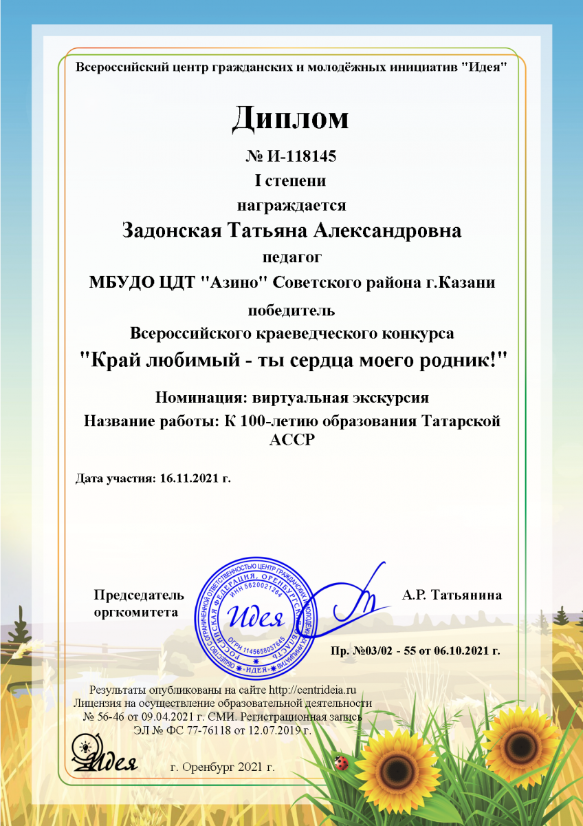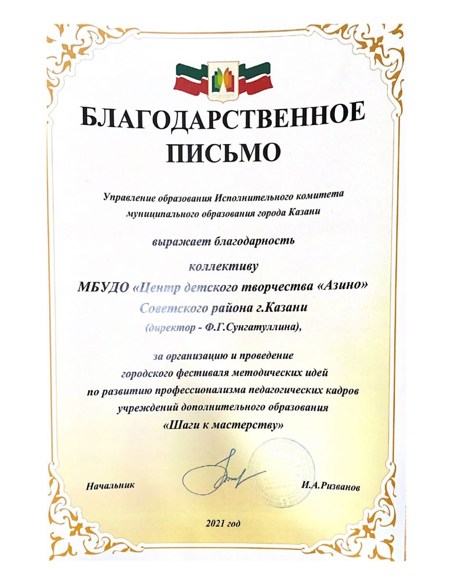 Муниципальное бюджетное учреждение дополнительного образования «Центр детского творчества «Азино» Советского района г. Казани» - новости