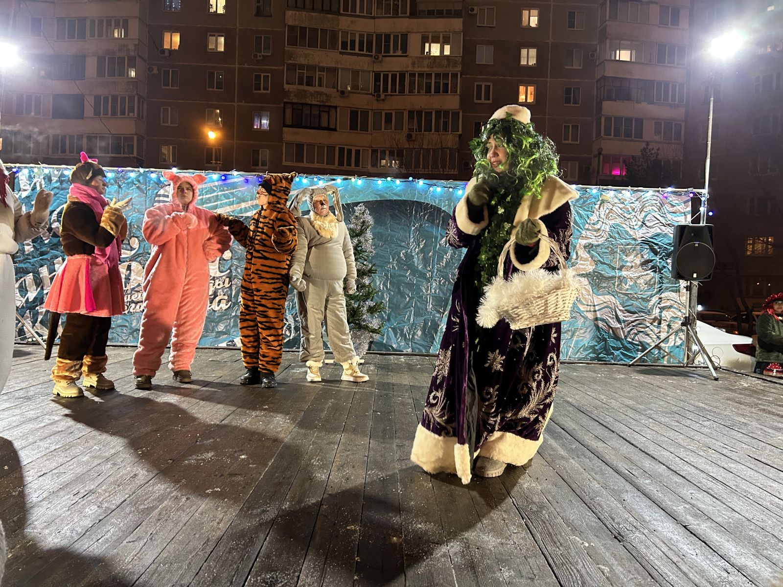 25 декабря 2024 года состоялось новогоднее представление "Новый год спешит к нам в гости" по ул. Проспект Победы, д.210б для жителей микрорайона и учащихся школы №180. В гости к детям пришли герои сказок, Дед Мороз и Снегурочка. Присутствующие на празднике активно участвовали в представлении. В конце мероприятия была зажжена новогодняя елка и все ребятишки получили сладкие подарки.