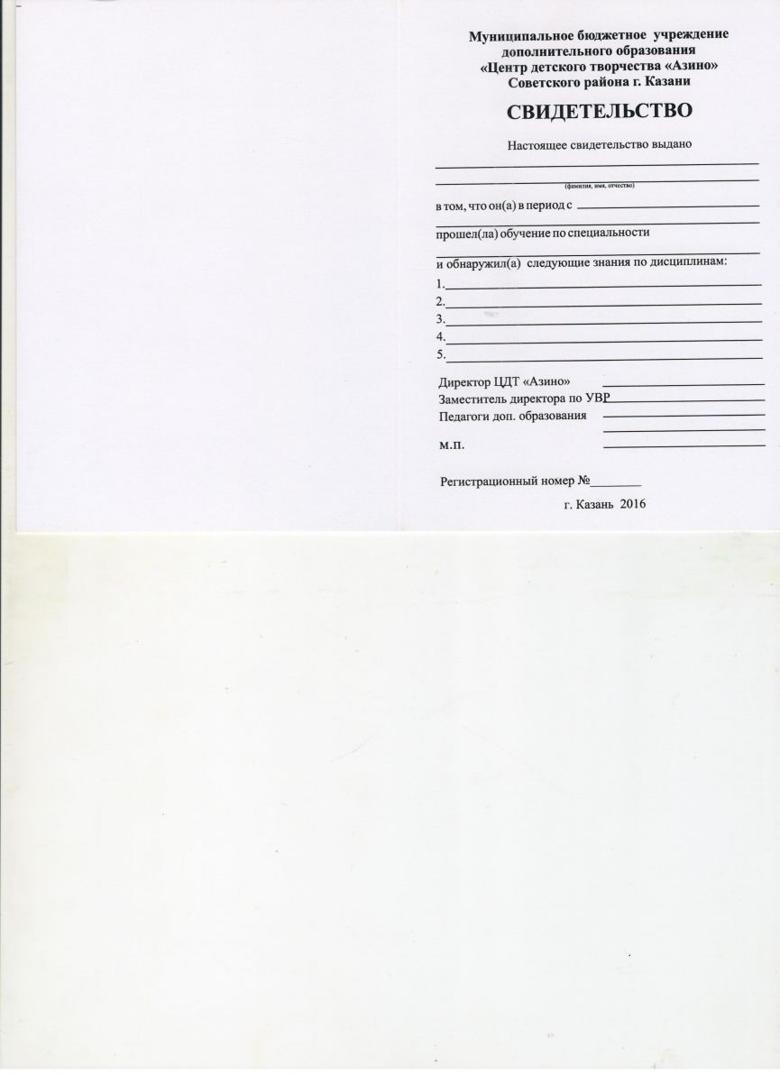Положение о порядке оформления и выдачи свидетельства о дополнительном образовании