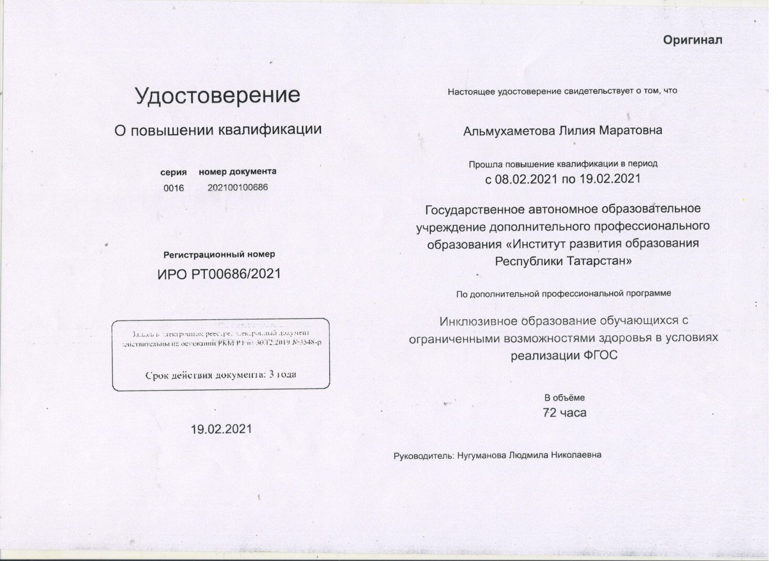 Удостоверение Альмухаметова.