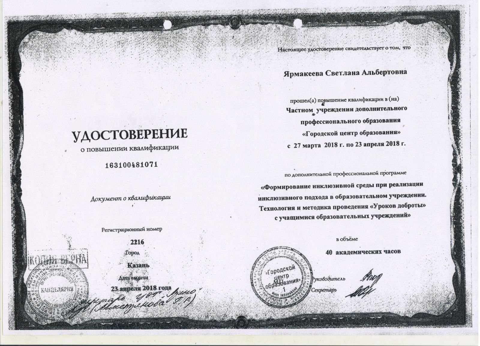 Удостоверение Ярмакеева Удостоерение.