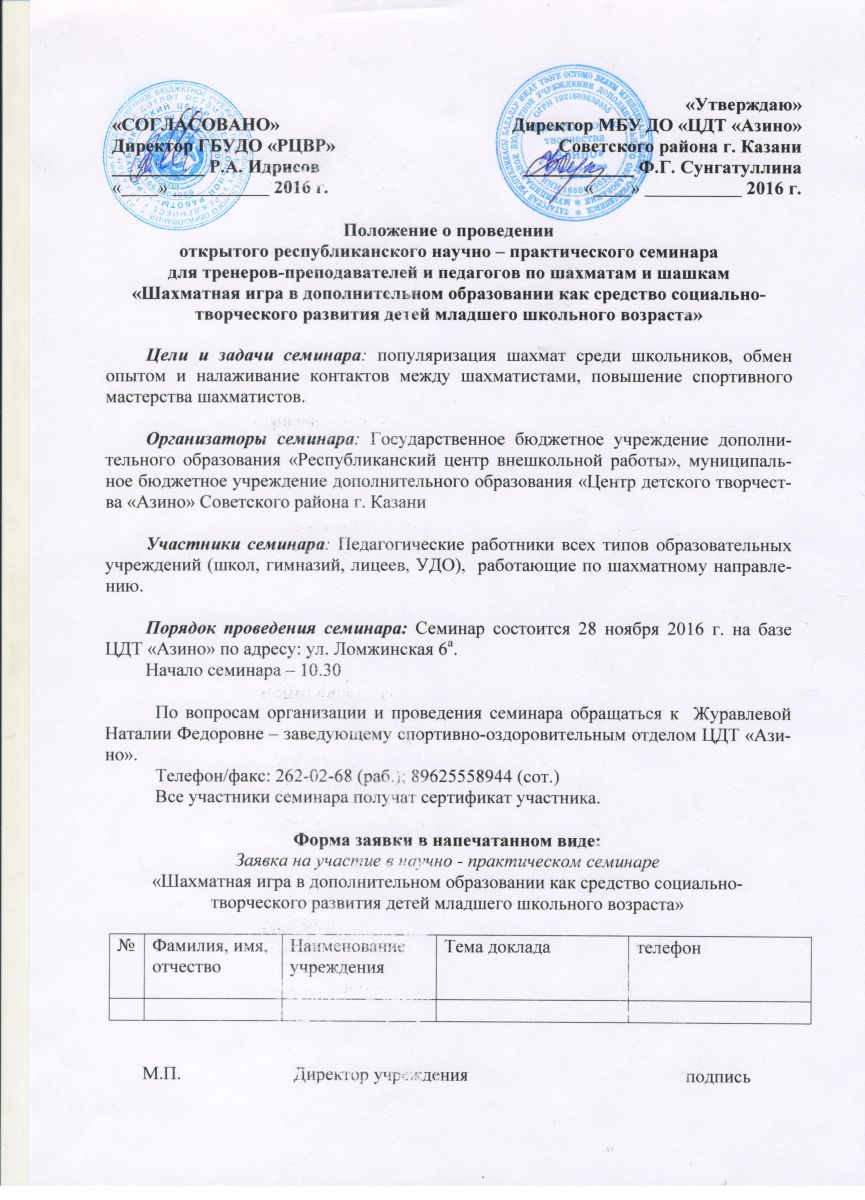 Положение о проведении открытого ресаубликанского научно-практического семинара по шахматам и шашкам