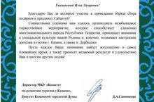 Благодарственное письмо за активное участие в Обряде сбора подарков к празднику Сабантуй 18.06.2022