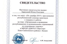 Семинар - практикум "Организация и проведение республиканских и муниципальных соревнований по спортивному туризму" 20.12.2019