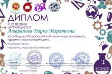 II Всероссийская олимпиада по сервису, туризму и гостиничному делу 08.04.2019