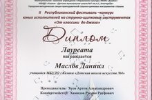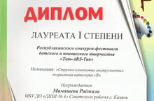 1 декабря в ДМШ №20 состоялся Республиканский конкурс детского и юношескогот творчества "Тат- ARS - Тан" . Мамяшева Радмила (пр.Карпова О.А., конц. Хамидов Р.Р.) - Лауреат I степени, Волкова Дана (пр.Арнольдова И.Р., конц.Гайдукова В.В.) - Лауреат III степени. Поздравляем!!!