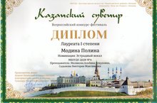 3-4 декабря в ДШИ Приволжского района г.Казани состоялся Всероссийский конкурс-фестиваль "Казанский сувенир". Дуэт: Мотрина Лиза и Ахмерова Алина (пр.Гайдукова В.В., Лукманова М.К.) - Лауреат III степени, Модина Полина (пр.Маликова А.Я., Садыкова В.М.) - Лауреат I степени. Ахмерова Алина (пр.Гайдукова В.В.) - Лауреат III степени, Кирюхин Сергей (пр.Марина Т.А.) - Лауреат II степени, Оркестр народных инструментов (рук.Марин А.В., Марина Т.А.) - Лауреат I степени.Поздравляем!!!