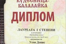 По итогам V Открытого Всероссийского конкурса исполнителей на балалайке и ансамблей народных инструментов "Кудесница балалайка": учащиеся класса балалайки преподавателя Усова А.А., концертмейстер Хамидов Р.Р. : - Усов Денис - Лауреат I степени, Юнусов Тимур - Лауреат II степени, Хабибуллин Евгений - Лауреат III степени, Володин Илья - Лауреат III степени, Маслов Даниил - Лауреат I степени, Хабибуллин Руслан- Лауреат III степени, Ансамбль "Маленькие кудесники" (пр.Усов А.А., конц.Хамидов Р.Р.) - Лауреат II степени, Дуэт домристов (пр.Белова Т.В.) - Лауреат II степени, Ансамбль "Аленький цветочек" (пр.Зайцева К.Л., конц.Фунтикова А.И.) - Дипломант, Дуэт домристов :Чукалина Карина, Салимзянова Амиля (пр.Зайцева К.Л., конц.Фунтикова А.И.)-Дипломант, Квартет гитаристов (пр.Тадовская О.В.) - Дипломант, Ансамбль гитаристов им.Цезаря Вамбы(пр.Абдуллин Б.Р.) - Дипломант, Дуэт:Ощепков Максим, Яшина Ли за(пр.Тадовская О.В.,Зайцева К.Л.) -Дипломант