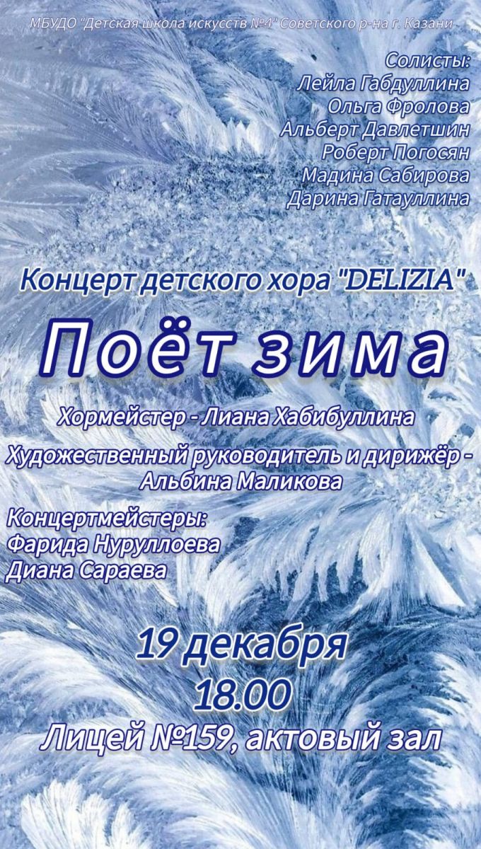 14 декабря в ДК Полимер состоялся Всероссийский конкурс «Новогодняя планета» Международного фестивального центра «Ритм». Детский образцовый хоровой коллектив «Delizia» (рук. Маикова А.Я.) – Лауреат 1 степени. Солисты Фролова Ольга, Сабирова Мадина, Погосян Роберт – Лауреаты 2 степени .Младший хор "Веселые нотки" (рук.Галламова Р.Р., конц. Нуруллоева Ф. С.)