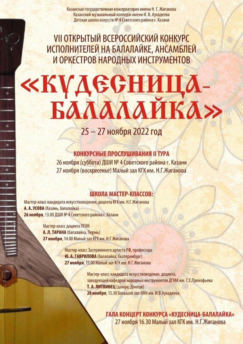 11 и 12 ноября состоялись концерты "Балалаечка - России удивительная дочка" в Городском ДК г. Арзамаса и ДМШ г. Дивеево, которые были приурочены к Юбилейным мероприятиям Арзамасского музыкального колледжа. В концертах с большим успехом выступпли учащиеся нашей школы Денис Усов, Снежана Шуклина, Михаил Шуклин (класс преподавателя А.А.Усова, концертмейстеры Р. Р. Хамидов, М.А.Сабелькин). Ребята выступали как со своими концертмейстерами, так и с Оркестром народных инструментов Арзамасского музыкального училища под управлением маэстро Петра Тулякова.