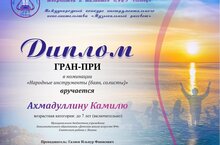 Учащийся по классу баяна Ахмадуллин Камиль (преп. Галиев И.Ф.) завоевал Гран-При Международного конкурса инструментального исполнительства «Музыкальный рассвет», который состоялся 7 апреля 2022 года. Поздравляем!!!