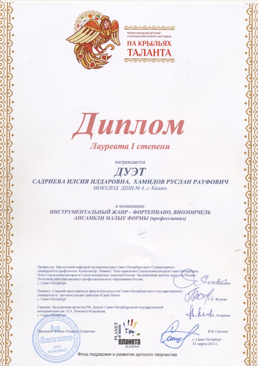 Международный конкурс "На крыльях таланта" -Дуэт Садриева И.И., Хамидов Р.Р.