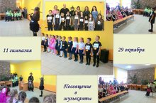 В филиале ДШИ № 6 "11 татарская гимназия" прошло «Посвящение в музыканты». Артистическая бригада обучающихся показала первоклассникам спектакль про потерянные нотки и силы музыки,превратившие упрямую и коварную Колдунью в преданную первоклассницу школы искусств. В мероприятии пели и играли воспитанники классов Нугмановой Л.И.,Гужовой Н.В.,Шакировой Л.Э. Впервые выступил ансамбль "Кояшкай" (рук. Гужова Н.В.) и хор первого класса (рук. Лобанов А.С.).