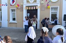 Параллельно, на крыльце гимназии, проходила концертная программа, в которой принимали участие таланты музыки и песен, и в их числе - дуэт скрипачей Хайруллиной Зарины и Хайрутдиновой Самиры, что обучаются в нашей школе у Гульназ Маратовны Сабирзяновой.