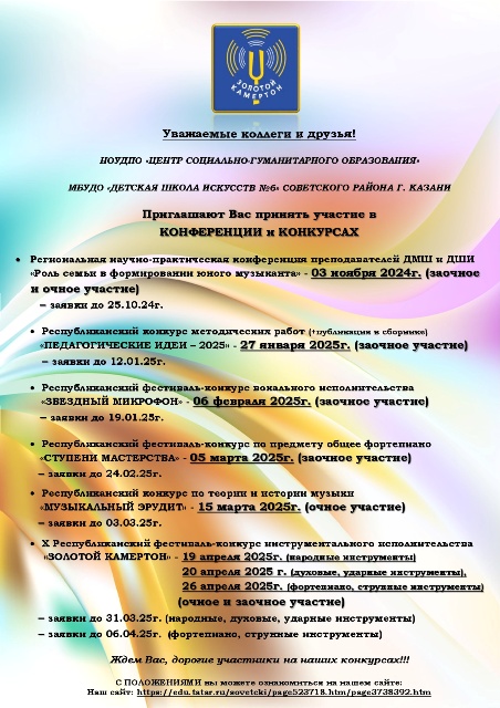 Муниципальное бюджетное учреждение дополнительного образования «Детская школа искусств №6" Советского района г. Казани - новости