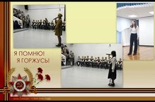 Но среди этой плеяды событий особо стоит отметить конкурс инсценированной солдатской песни, который прошёл 26 апреля. На конкурс были приглашены участники Великой Отечественной войны и ветераны тыла. Это придало концерту особое значение. Все ребята очень старались порадовать своим творчеством гостей праздника. И, конечно, их выступления не оставили равнодушными ветеранов! Сколько тёплых слов благодарности прозвучало в адрес юных артистов! Сколько искренних слез было украдкой спрятано в платочках во время исполнения композиций, посвящённых блокадному Ленинграду. Никого из присутствующих не оставил равнодушными выступления наших ребят. Но и сами юные артисты пережили минуты настоящего счастья от того, что сумели подарить радость и положительные эмоции присутствующим ветеранам!