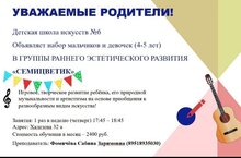 Объявлется набор в группы раннего эстетического развития "Семицветик" 05.09.2025