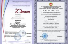 Не только обучающиеся скрипичного класса блистают на конкурсах различных рангов – преподаватель Попова Гульнара Мубаракшевна участвовала в Республиканском конкурсе методических пособий педагогов дополнительного образования художественной направленности, организованным КГИК и МАУДО «ДМШ № 13» Набережных Челнов Попова Гульнара Мубаракшевна, где получила диплом 1 степени. Также Гульнара Мубаракшевна прошла республиканскую стажировку на базе МБУДО «ДШИ № 3»Ново - Савиновского района г. Казани, и организованную Республиканским Центром Внешкольной Работы.