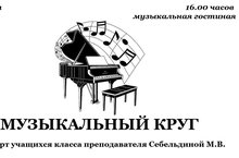 1 декабря состоялся концерт «Музыкальный круг». Юные пианисты, учащиеся класса преп. Себельдиной М.В. исполнили музыку композиторов XIX века, а также ныне живущих композиторов.