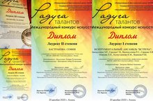 Диплом 1 степени в Всероссийском творческом конкурсе «Конкурсплюс»;