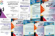 Диплом 1 степени в Всероссийском творческом конкурсе «Конкурсплюс»;