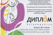 На Всероссийском фестивале - конкурсе детского и юношеского творчества "Золотая лира" отличились и обучающиеся класса баяна Хасамеева А.Ф. Дуэт Хамидуллин Рушан-Хуснутдинов Камиль - лауреаты III степени, а Шалавин Павел стал дипломантом II степени, прошедшего 24 марта, конкурса "Золотая лира".