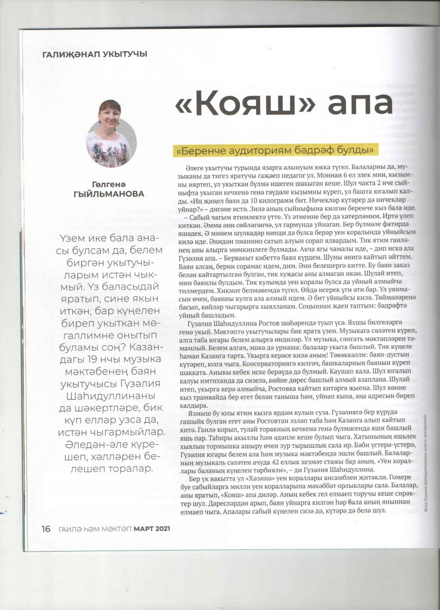 Публикация Шагидуллина Г.М. в "Гаилэ хэм мэктэп" 25.03.2021