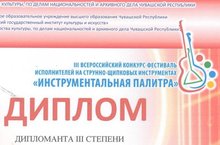 Учащиеся нашей школы приняли участие во Всероссийском конкурсе-фестивале исполнителей на струнно-щипковых инструментах "Инструментальная палитра". По итогам конкурса Морозова Анна (рук. Абдуллин Б.Р.) получила диплом лауреата 3 степени. Поздравляем! Желаем дальнейших творческих успехов!