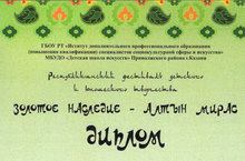 Учащиеся нашей школы приняли участие в Республиканском фестивале детского и юношеского творчества "Золотое наследие - Алтын мирас". По итогам конкурса ансамбль "Дулкыннар" получил диплом лауреата 1 степени ,