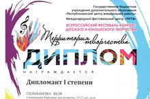 Диплом лауреата 1 степени - дуэт "Кампанэлла" (рук. Григорьева М.Н.), Юртаева Арина (рук. Ниневская Г.И.)
