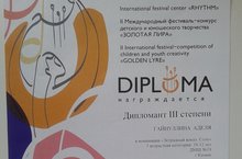 Учащиеся нашей школы приняли участие в Международном фестивале-конкурсе детского и юношеского творчества "Золотая лира. По итогам конкурса Гайнуллина Аделя получила диплом 3 степени в номинации "Эстрадный вокал. Соло" (педагог Нургалеева В.З.). Поздравляем! Желаем дальнейших творческих успехов!