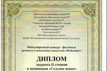 Диплом лауреата 2 степени - Мифтахов Амирхан (педагог Пономарёва М.Ф.)