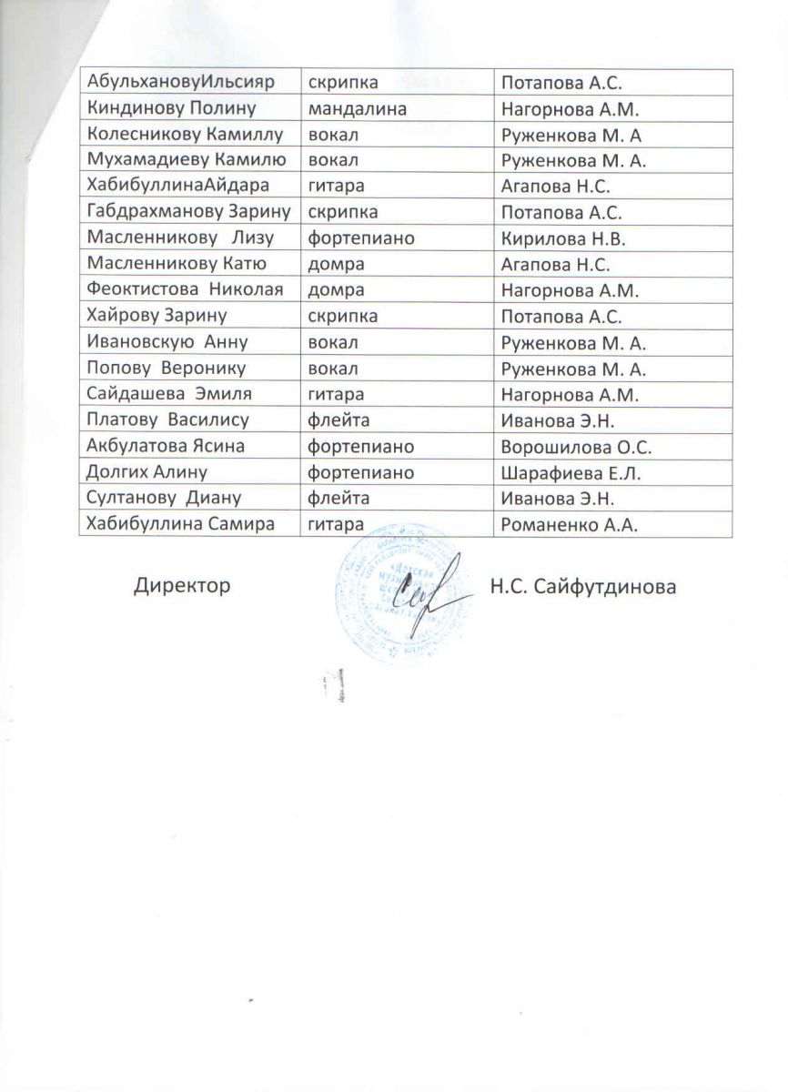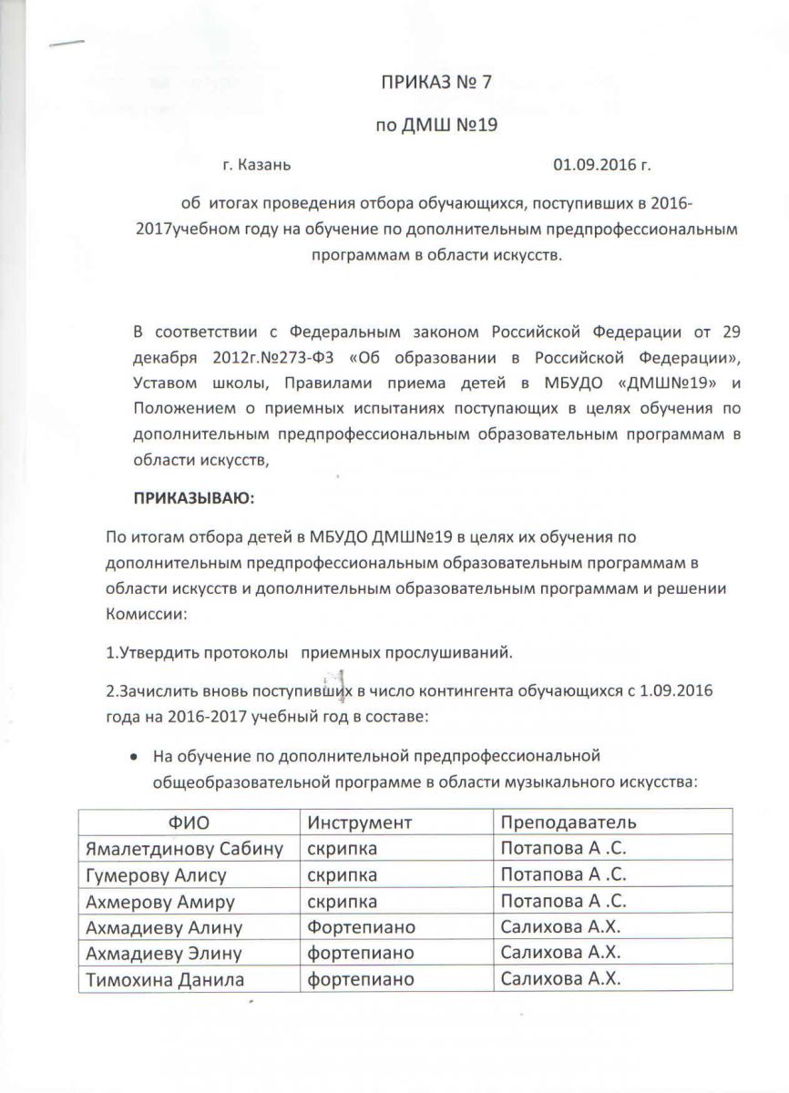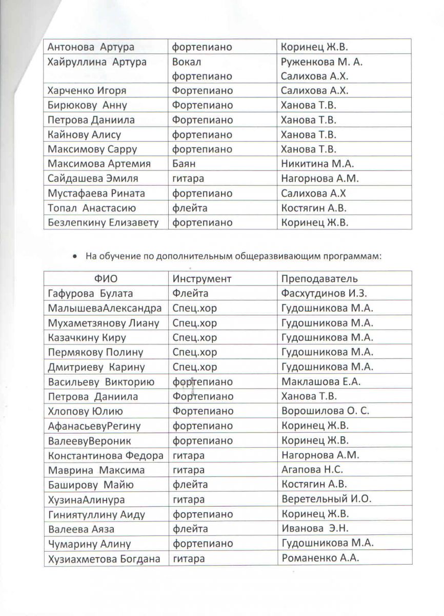 поступивших на платное отделение ДМШ№19