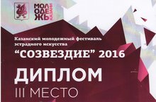 Учащиеся нашей школы принимали участие в Казанском молодежном фестивале эстрадного искусства "Созвездие- 2016". По итогам фестиваля Хайруллин Артур (рук. Григорьева М.Н., Губайдуллина Л.А.) получил диплом за 3 место. Номинация вокал-соло 1 младшая группа (5-7 лет). Поздравляем! Желаем дальнейших творческих успехов!