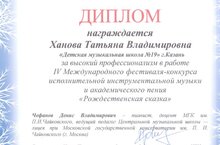 С дипломом – Лучший концертмейстер IV Международного фестиваля-конкурса «Рождественская сказка»