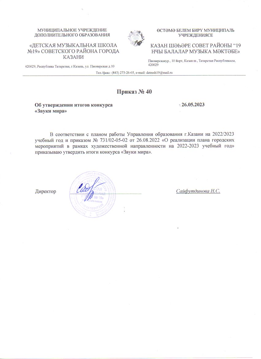 Муниципальное бюджетное учреждение дополнительного образования "Детская музыкальная школа №19" Советского района г. Казани - новости