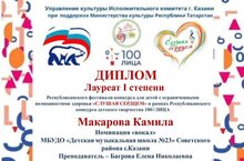 Поздравляем Макарову Камилу (преподаватель: Багрова Елена Николаевна) - Лауреата I степени Республиканского фестиваля-конкурса "Слушая сердцем" в рамках Республиканского конкурса детского творчества 100//ЛИЦА! Желаем дальнейших творческих успехов и новых побед!