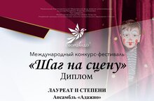 Поздравляем Ансамбль "Адажио" (преподаватель: Гайнутдинова Гульсина Гимрановна, концертмейстер: Бакулина Агата Юрьевна) - Лауреата II степени Международного конкурса-фестиваля "Шаг на сцену"! Желаем дальнейших творческих успехов и новых побед!