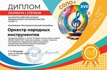Оркестр народных инструментов (преподаватель: Бадрутдинов Радик Мансурович, концертмейстеры: Катков Алексей Николаевич, Клименко Ольга Вячеславовна) - Лауреат I степени