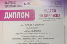 Поздравляем Валееву Ариану (преподаватель: Багрова Елена Николаевна) - Лауреата II степени IV Всероссийского фестиваля-конкурса детского творчества "Чудеса на виражах"! Желаем дальнейших творческих успехов и новых побед!