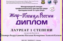 Поздравляем преподавателей нашей школы с успешным выступлением в Международном конкурсе профессионального мастерства среди преподавателей 15 стран Мира «Жар-Птица России»!