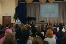 13.03.2018г. на базе МБОУ "Многопрофильная школа №181" Советского района г.Казани состоялся районный этап Республиканского фестиваля детского народного творчества «Без бергǝ», который посетил Президент Республики Татарстан Рустам Минниханов. В мероприятии также приняли участие Мэр Казани Ильсур Метшин, руководитель Аппарата Президента РТ Асгат Сафаров, вице-премьер РТ Лейла Фазлеева, заместитель Премьер-министра РТ - министр образования и науки РТ Рафис Бурганов, глава администрации Советского района Рустем Гафаров, начальник управления образования Казани Ильнар Хидиятов и другие. От нашей школы в фестивале принимали участие ансамбль народной песни "Махоня" (руководитель: Глухова О.В., концертмейстер: Бадрутдинов Р.М.); оркестр народных инструментов ( руководитель: Бадрутдинов Р.М.), ансамбль мандолинистов "Улыбка" (руководитель: Бадрутдинова Э.М., концертмейстер: Катков А.Н.), хор (руководитель: Уварова Л.Р.). «Прекрасная школа и замечательный праздник "Без бергэ" – "Мы вместе", – отметил Рустам Минниханов. – Мы посмотрели, как вместе с родителями дети участвуют в спортивных соревнованиях, создают творческие выставки. И это важно, потому что на примере родителей воспитывается наше подрастающее поколение». Необходимо сохранить мир и согласие в нашей республике, и для этого есть все возможности, сказал Президент РТ школьникам и родителям. «Мы можем оставить по наследству здание, дом, деньги, но самое ценное – это знания. Поэтому необходимо дать качественное образование нашим детям. И сегодня многое делается в Республике по укреплению материально-технической базы школ, используются современные методы обучения, передовые технологии. Конечно, важно, чтобы в процессе обучения участвовали родители», – подчеркнул он.