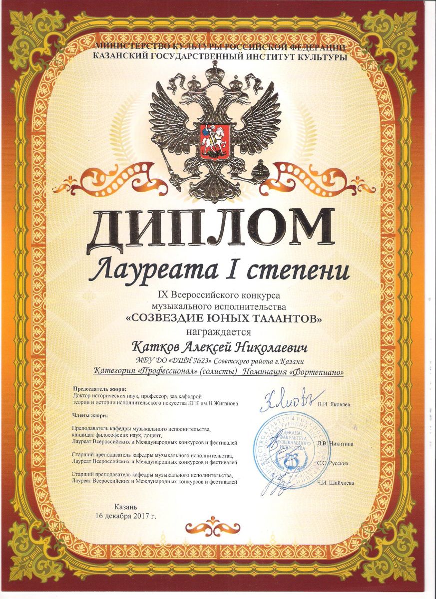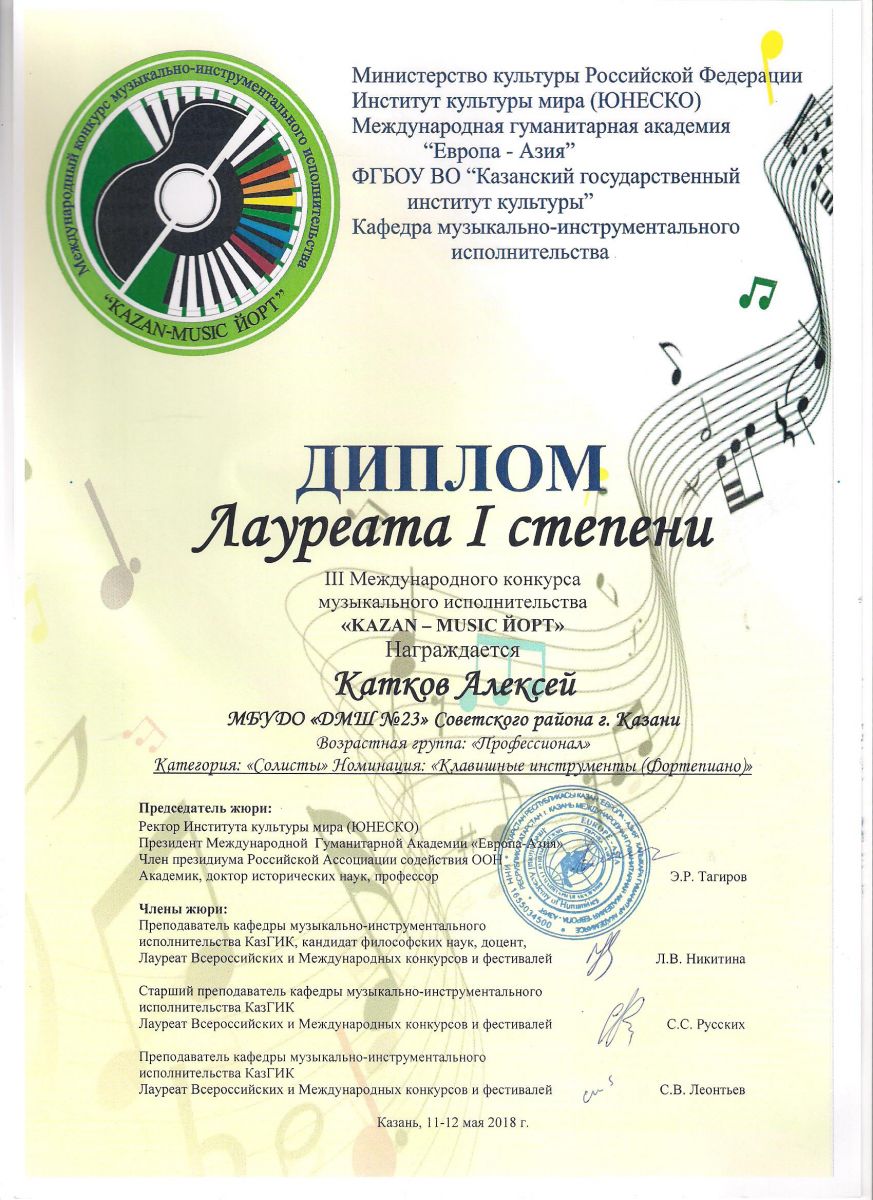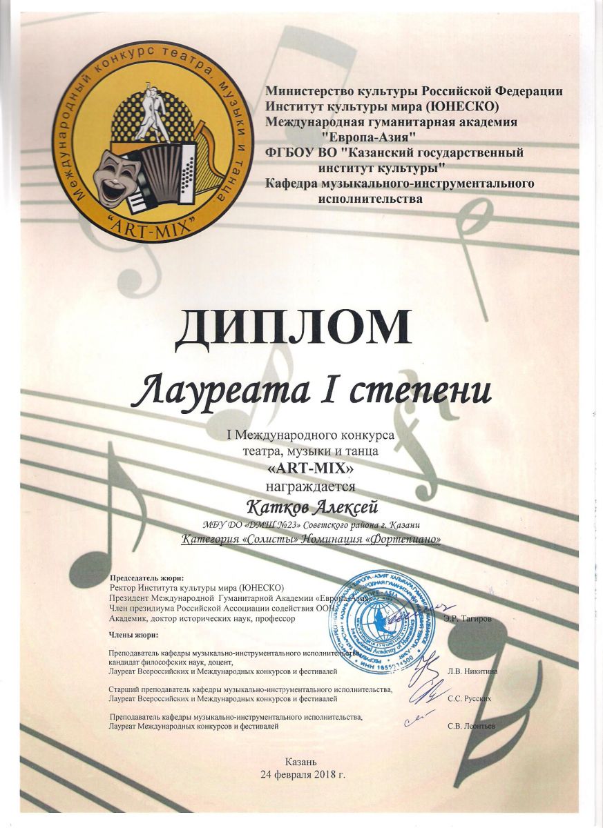 I Международный конкурс театра, музыки и танца "ART-MIX" - Диплом лауреата 1 степени - Катков А.Н.