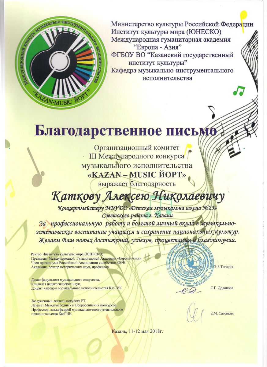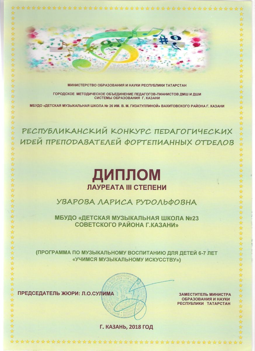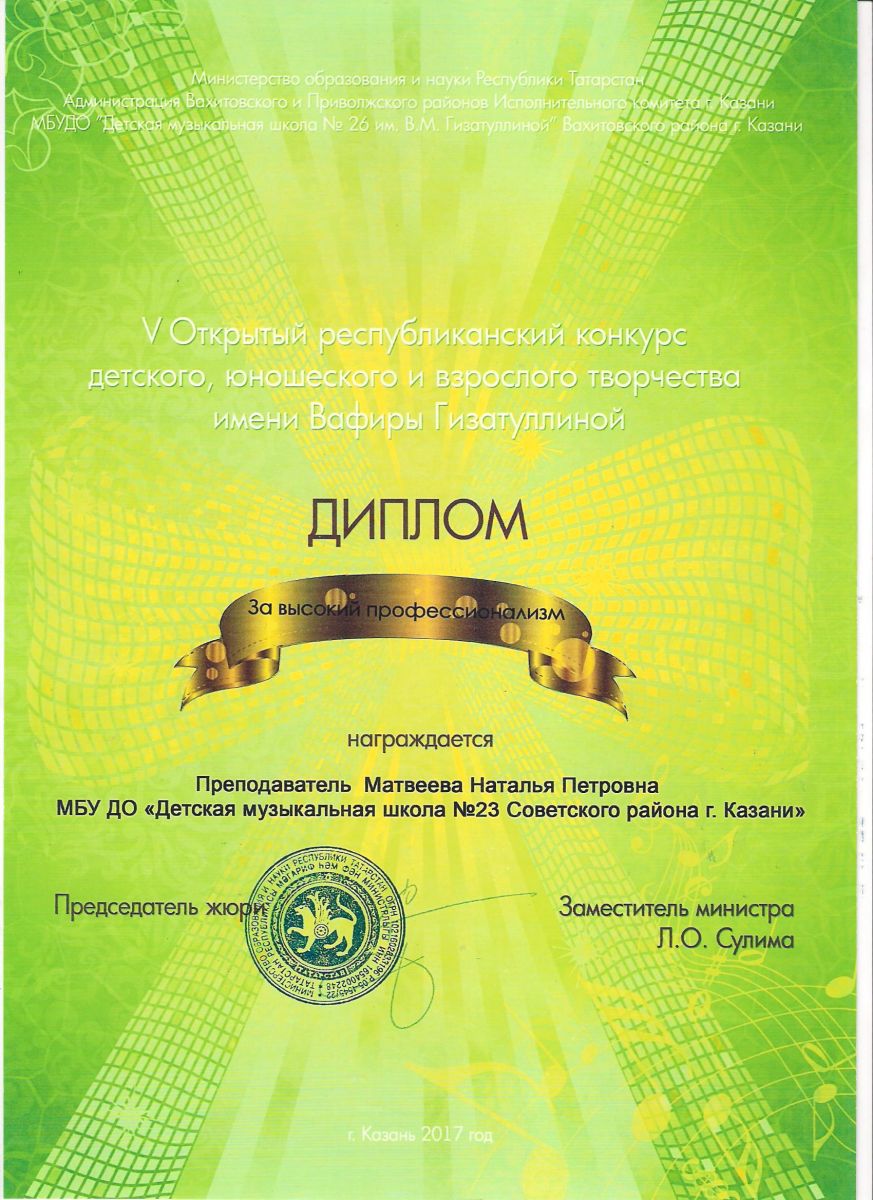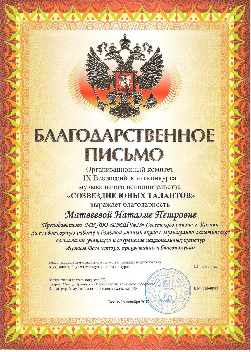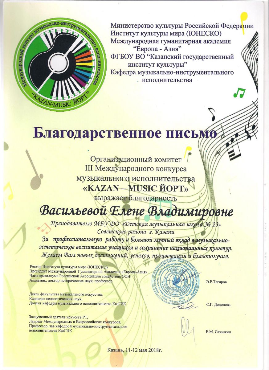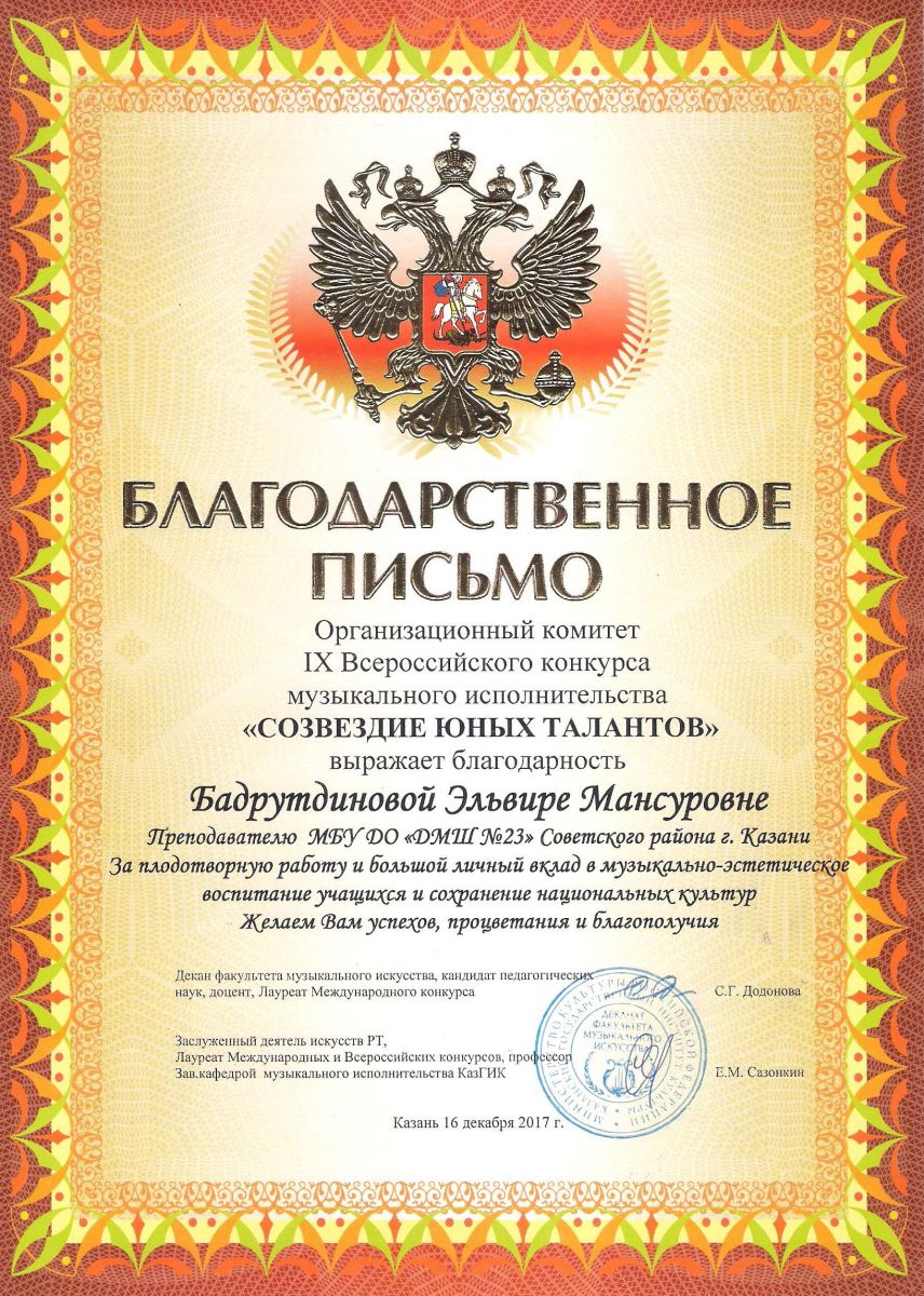 Республиканский конкурс юных композиторов Татарстана - Благодарность - Дутова Е.П.
