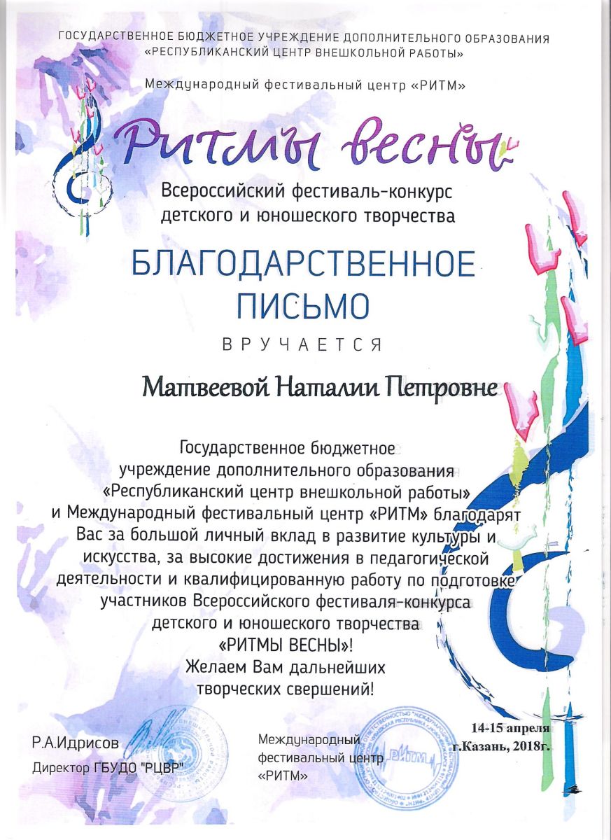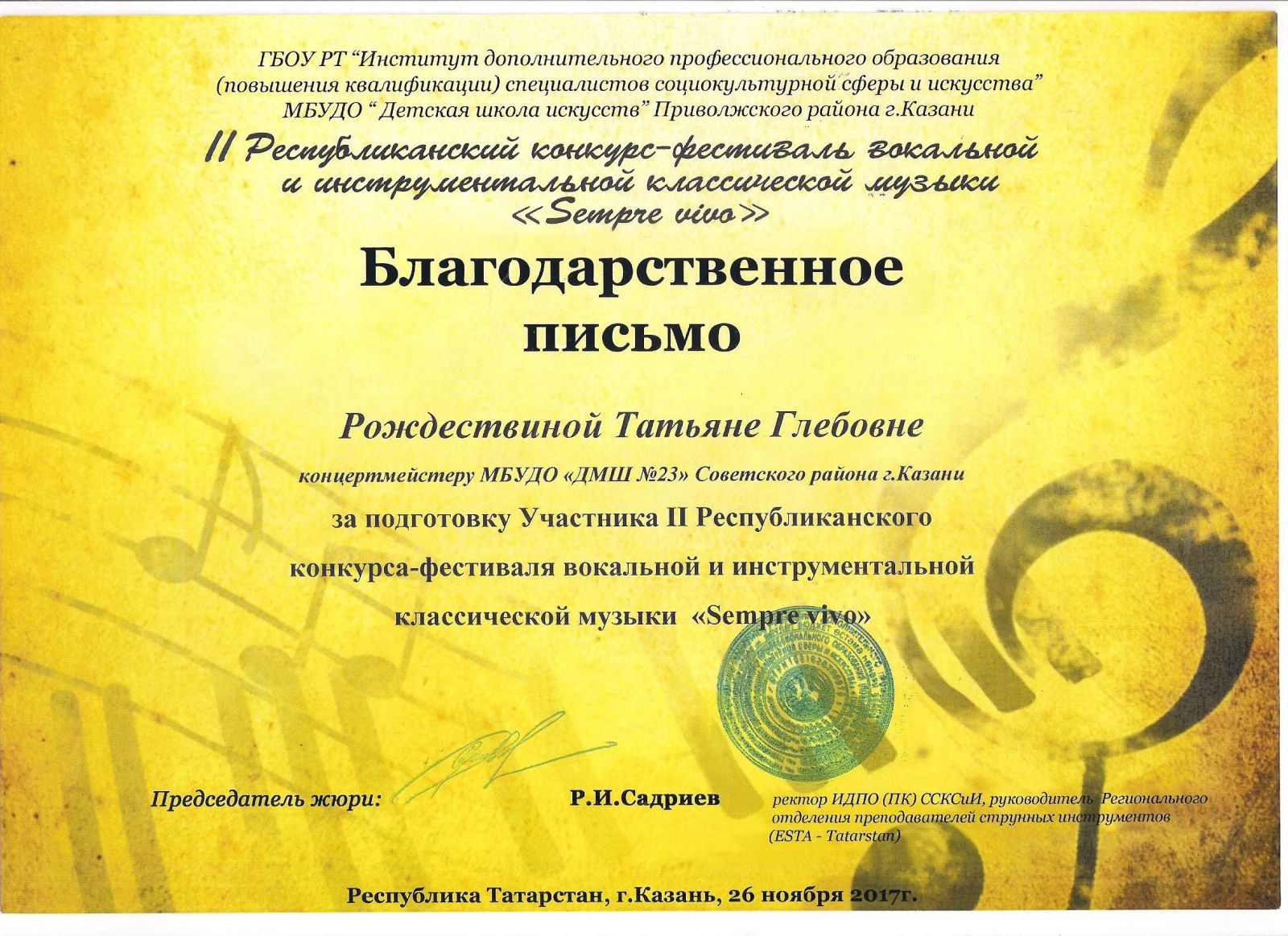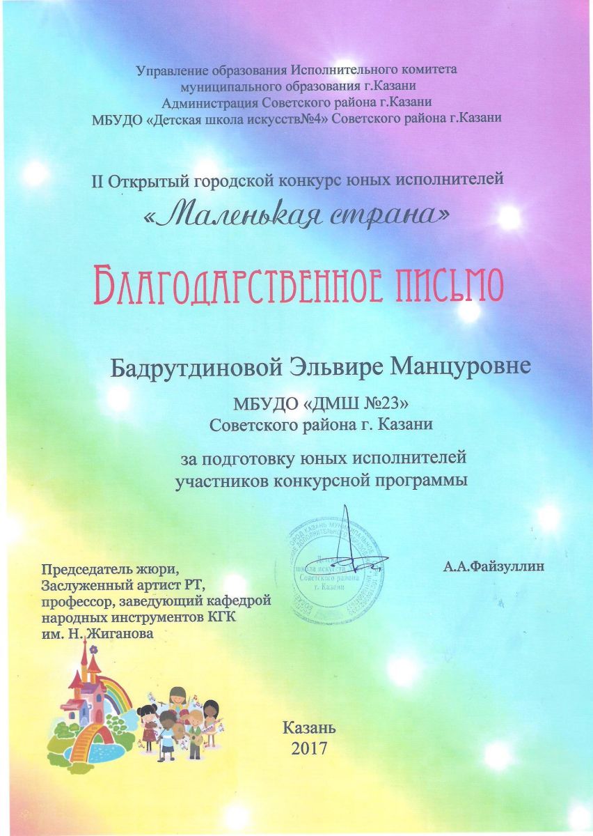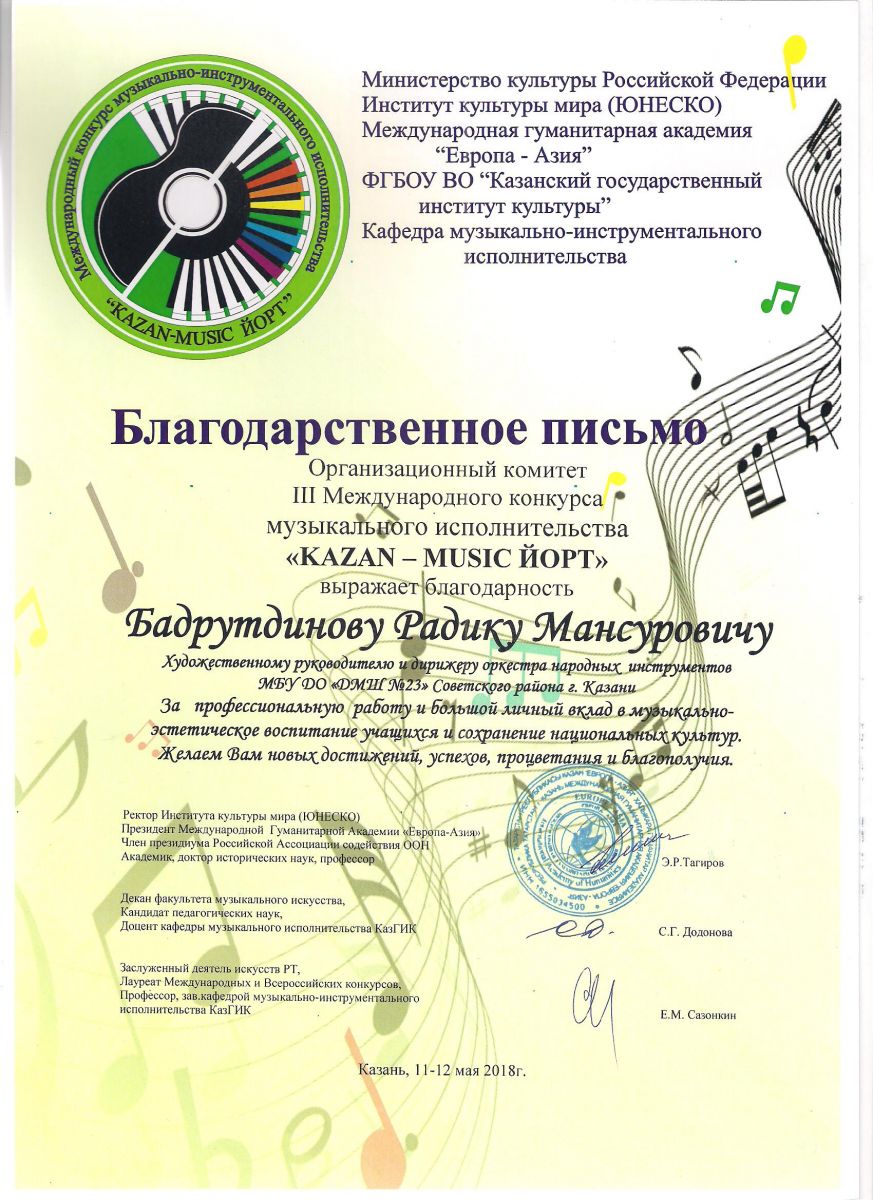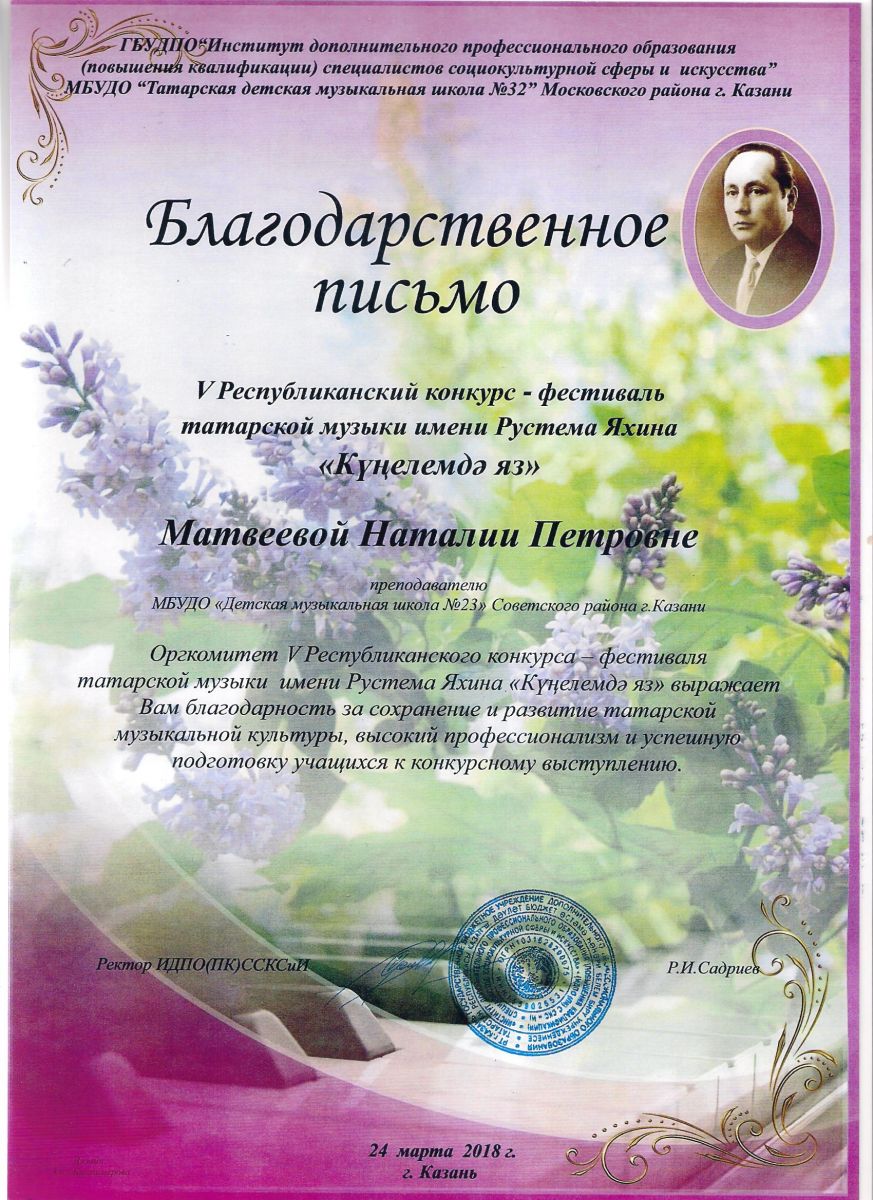 Республиканский конкурс юных композиторов Татарстана - Благодарность - Дутова Е.П.