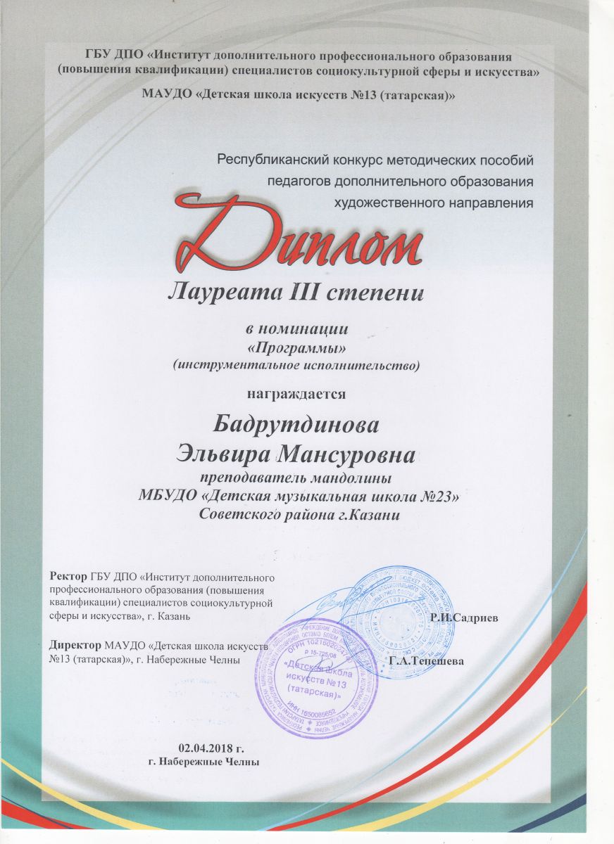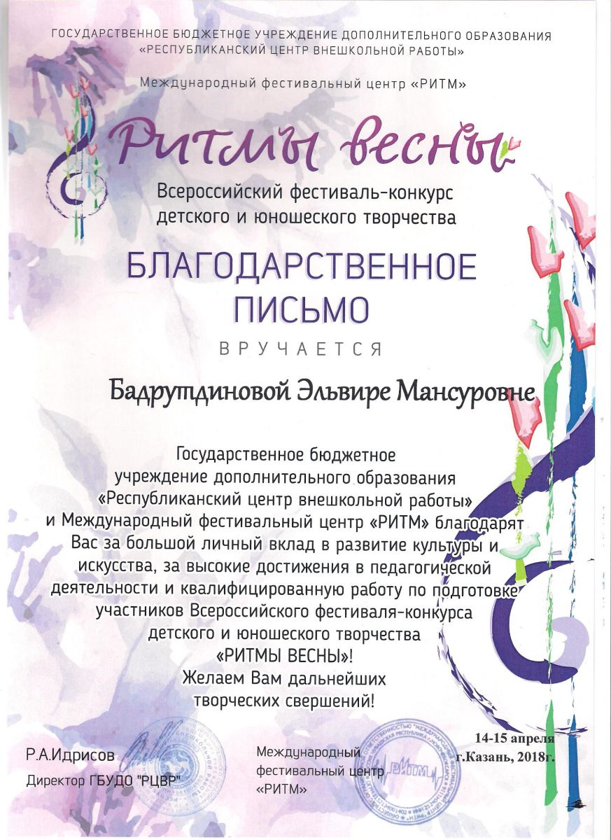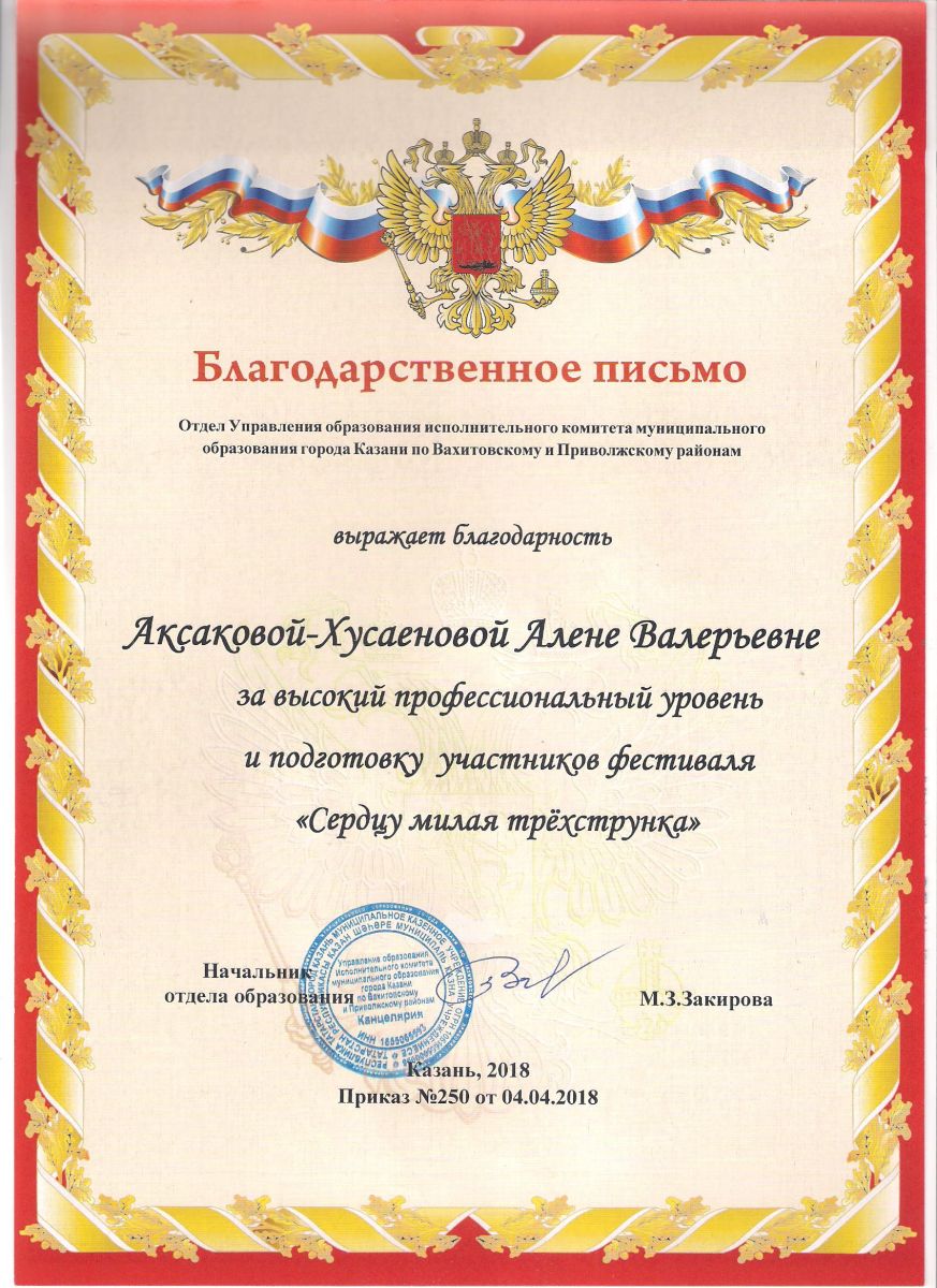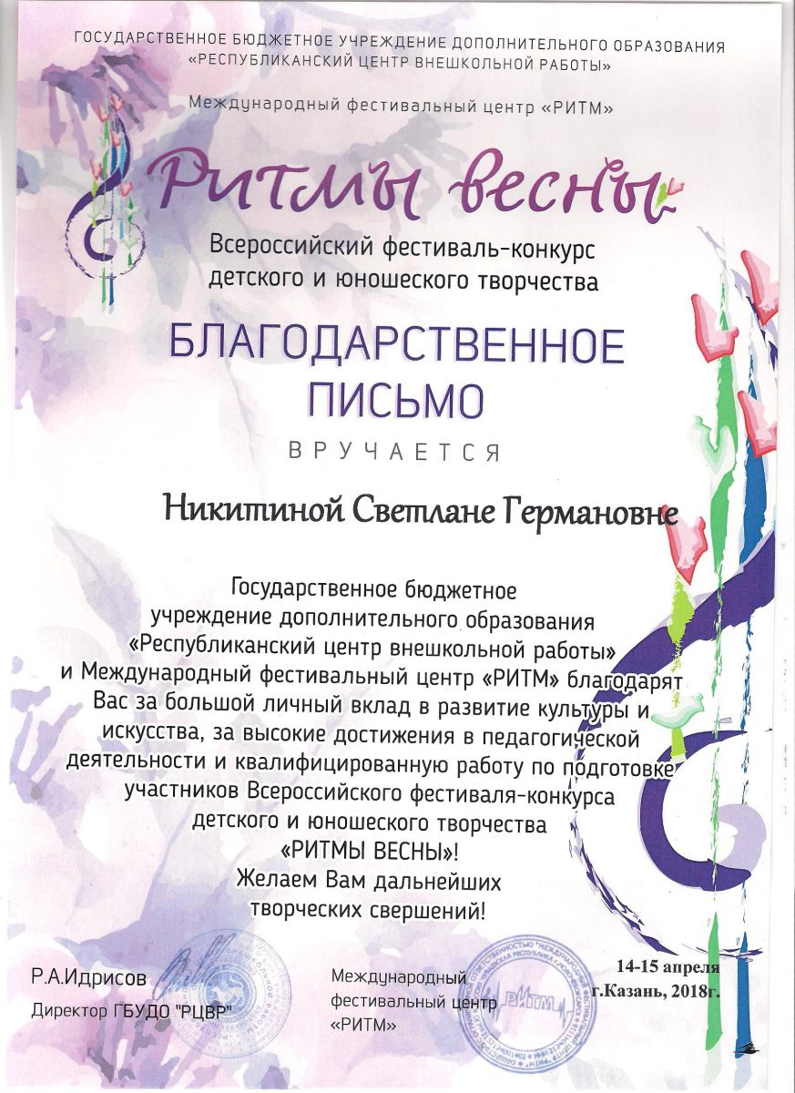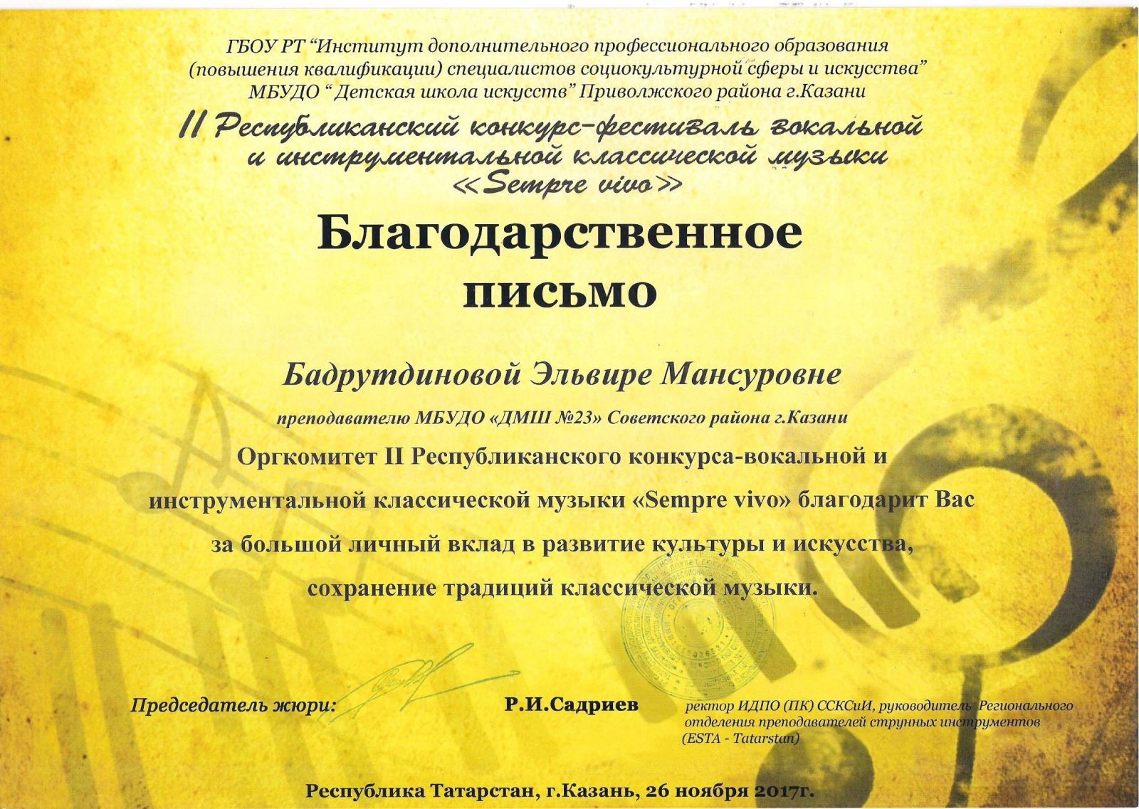 Республиканский конкурс юных композиторов Татарстана - Благодарность - Дутова Е.П.