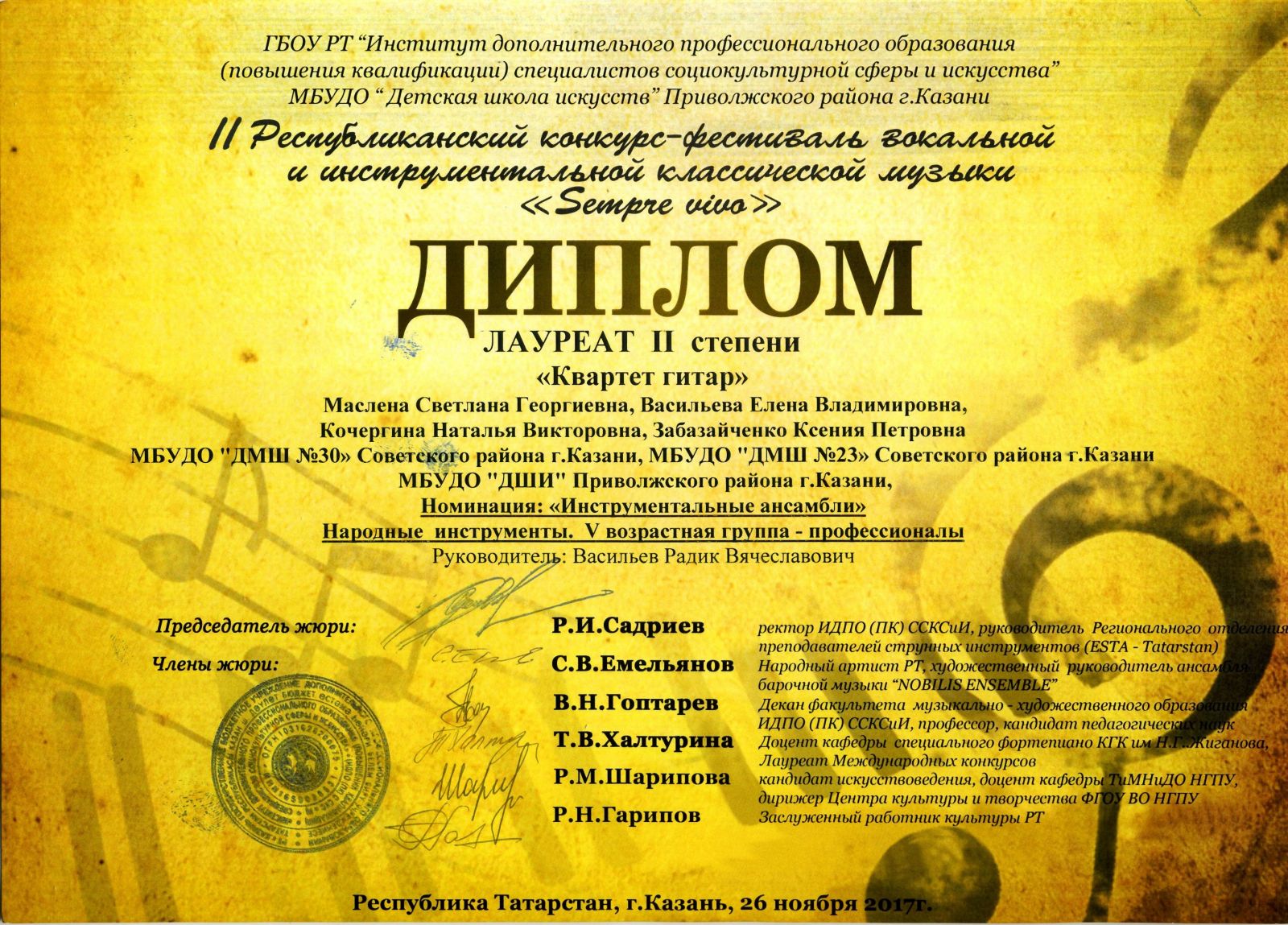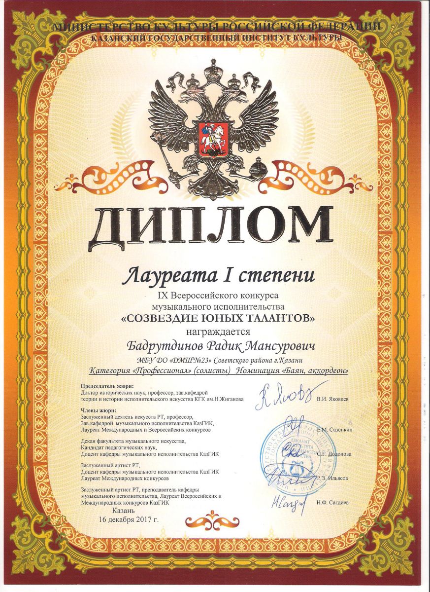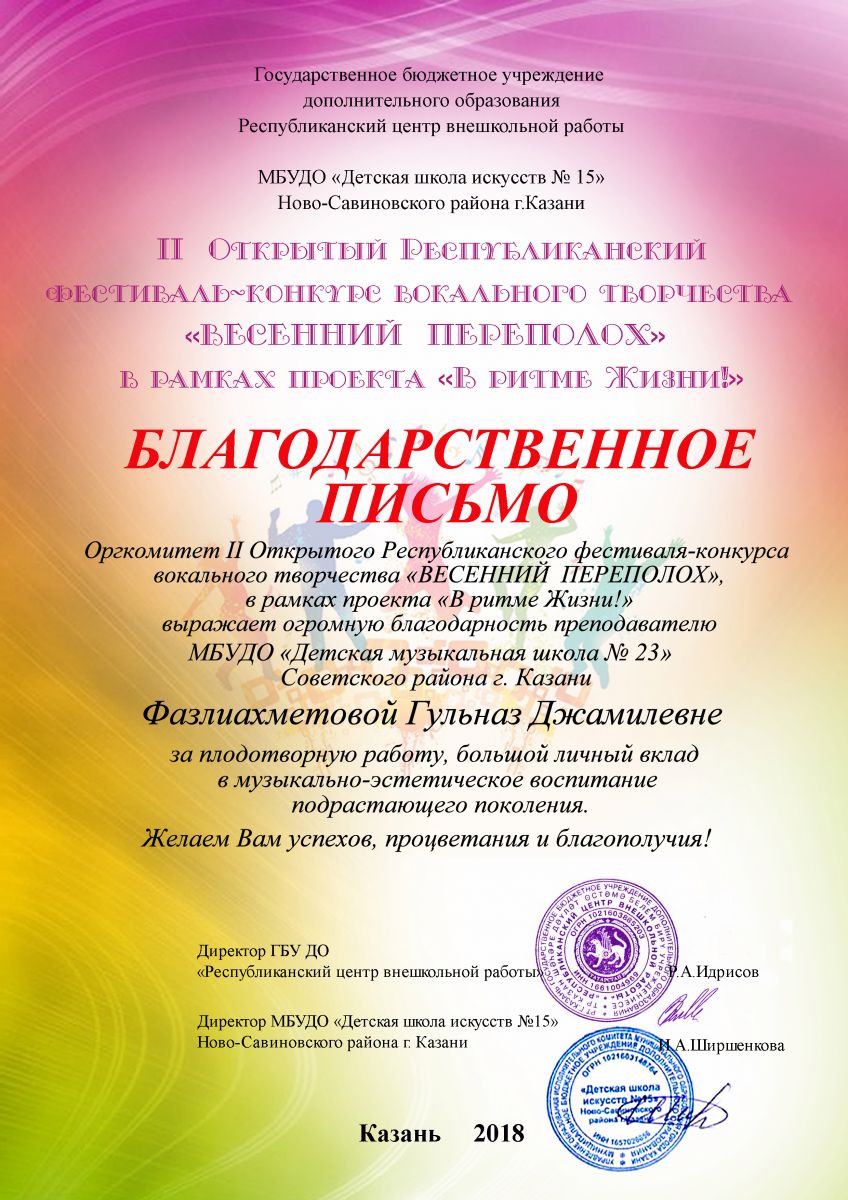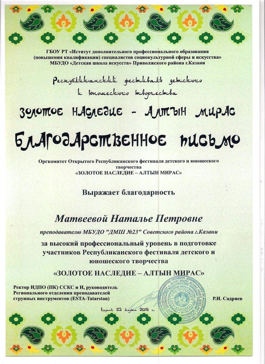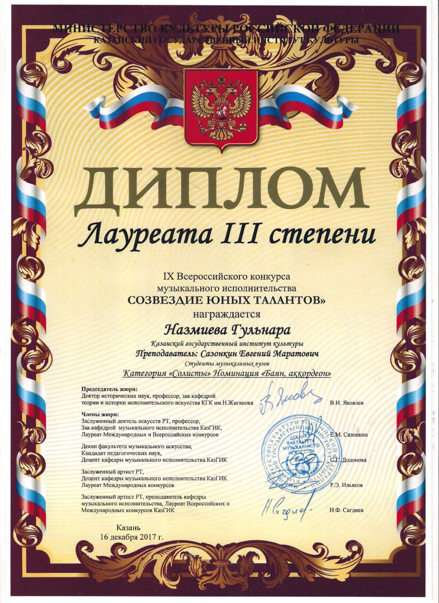 Республиканский конкурс юных композиторов Татарстана - Благодарность - Дутова Е.П.