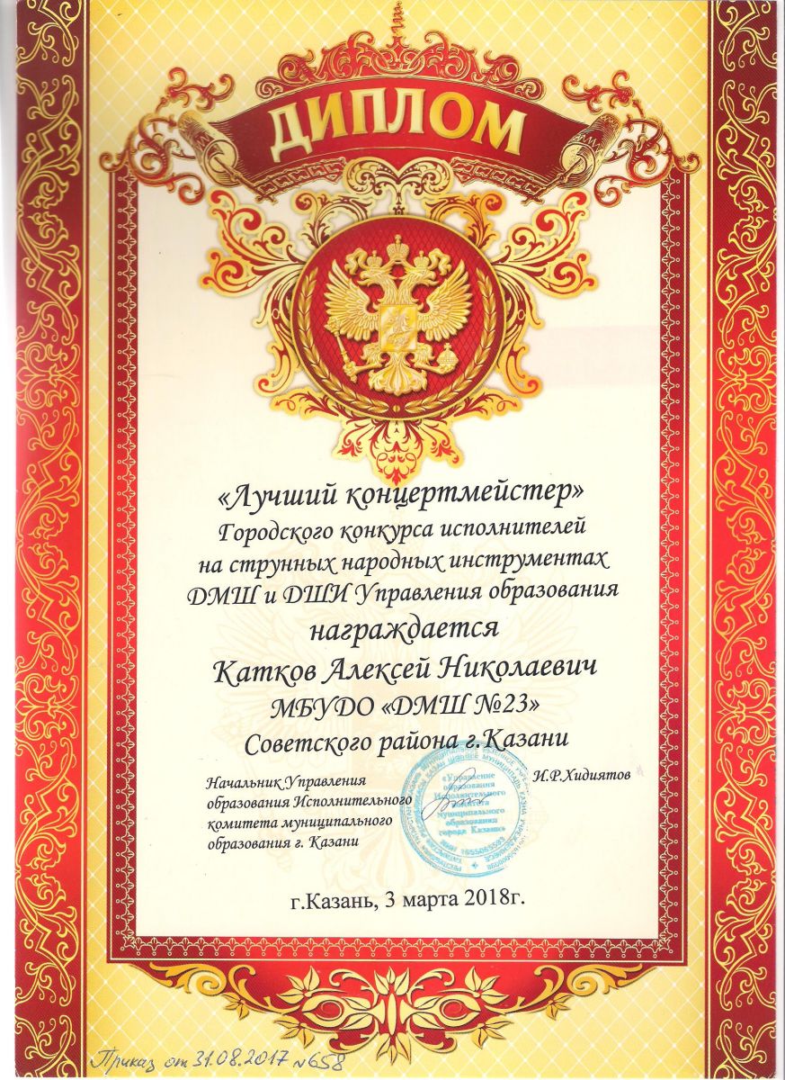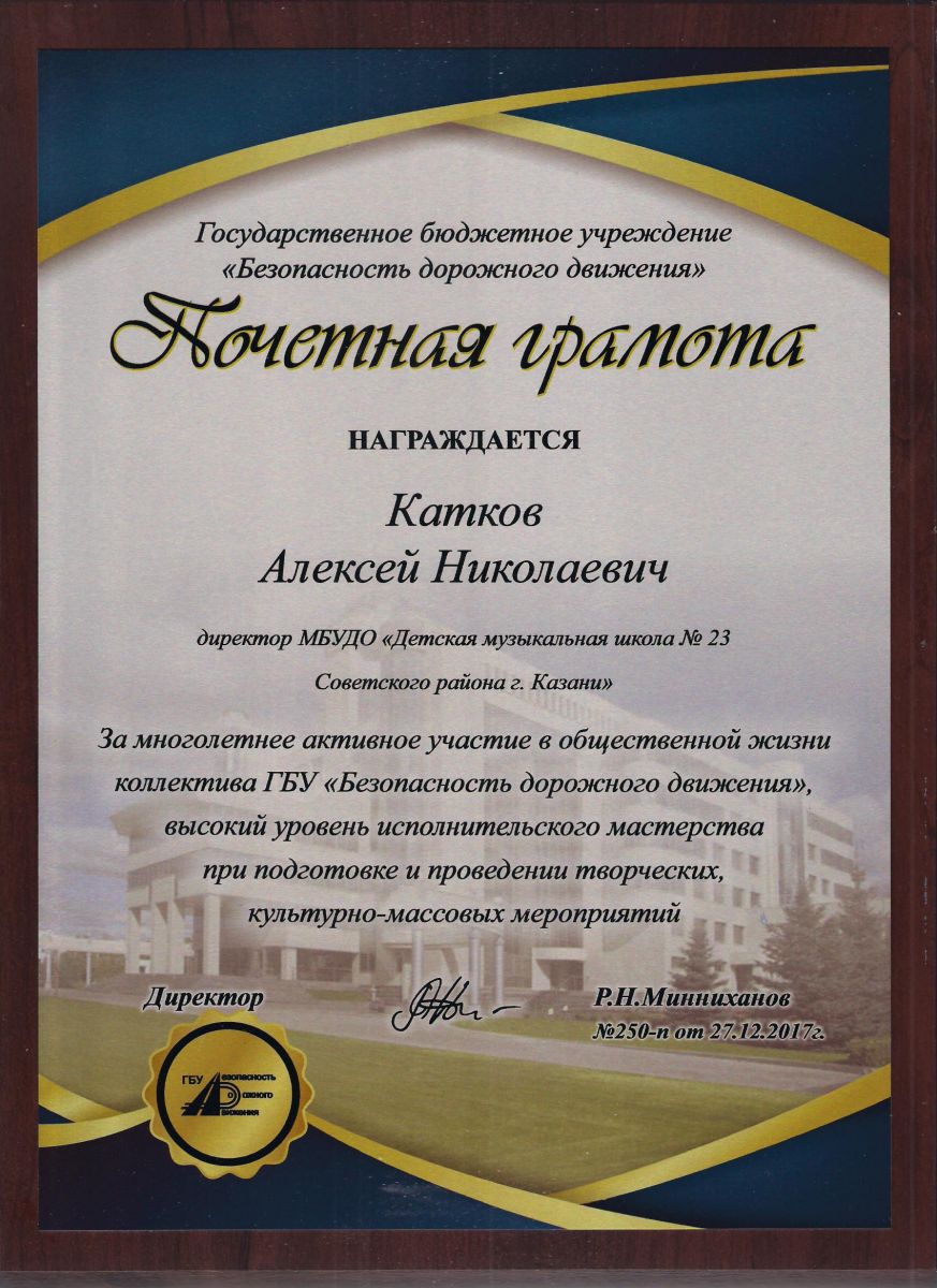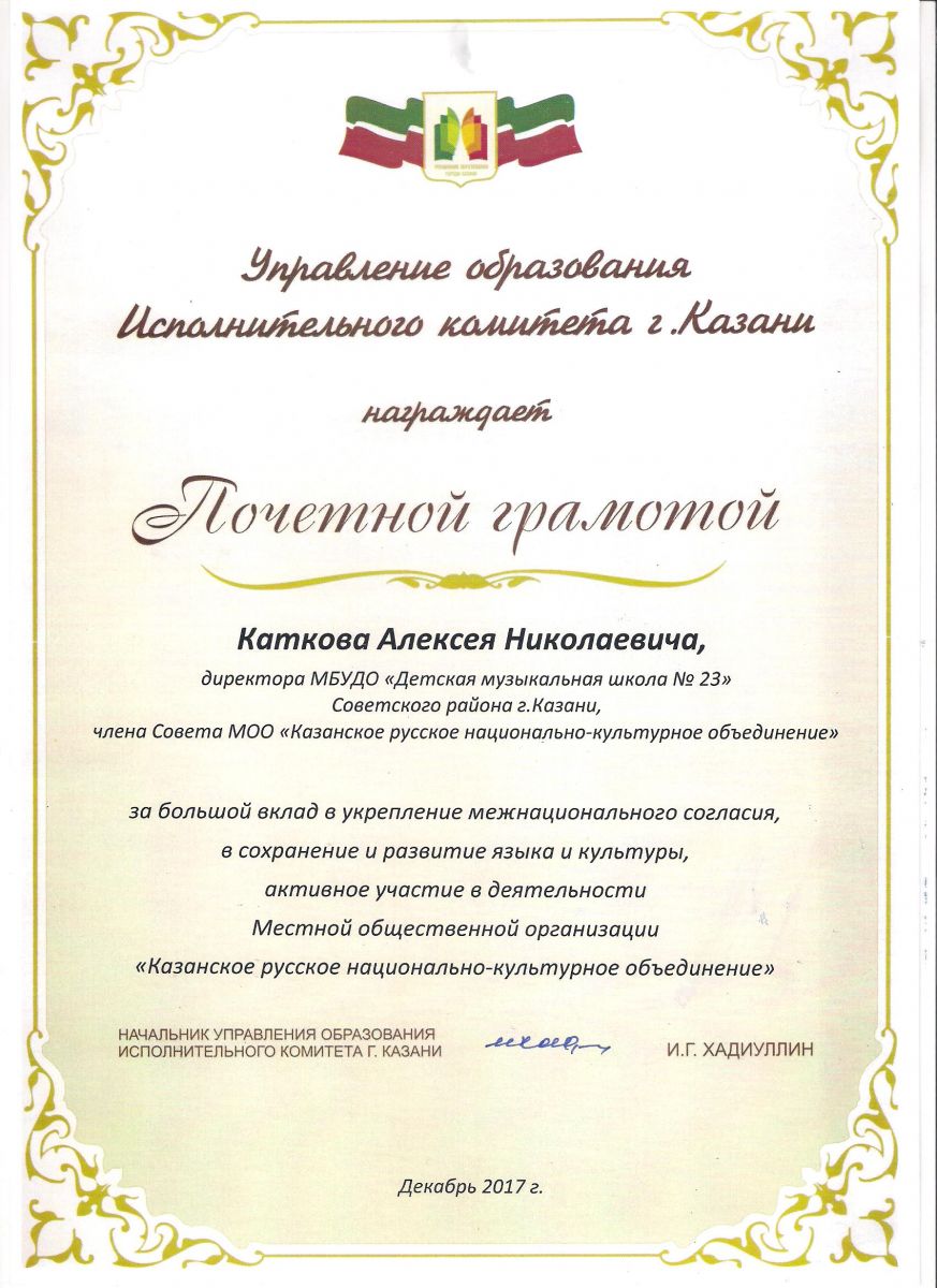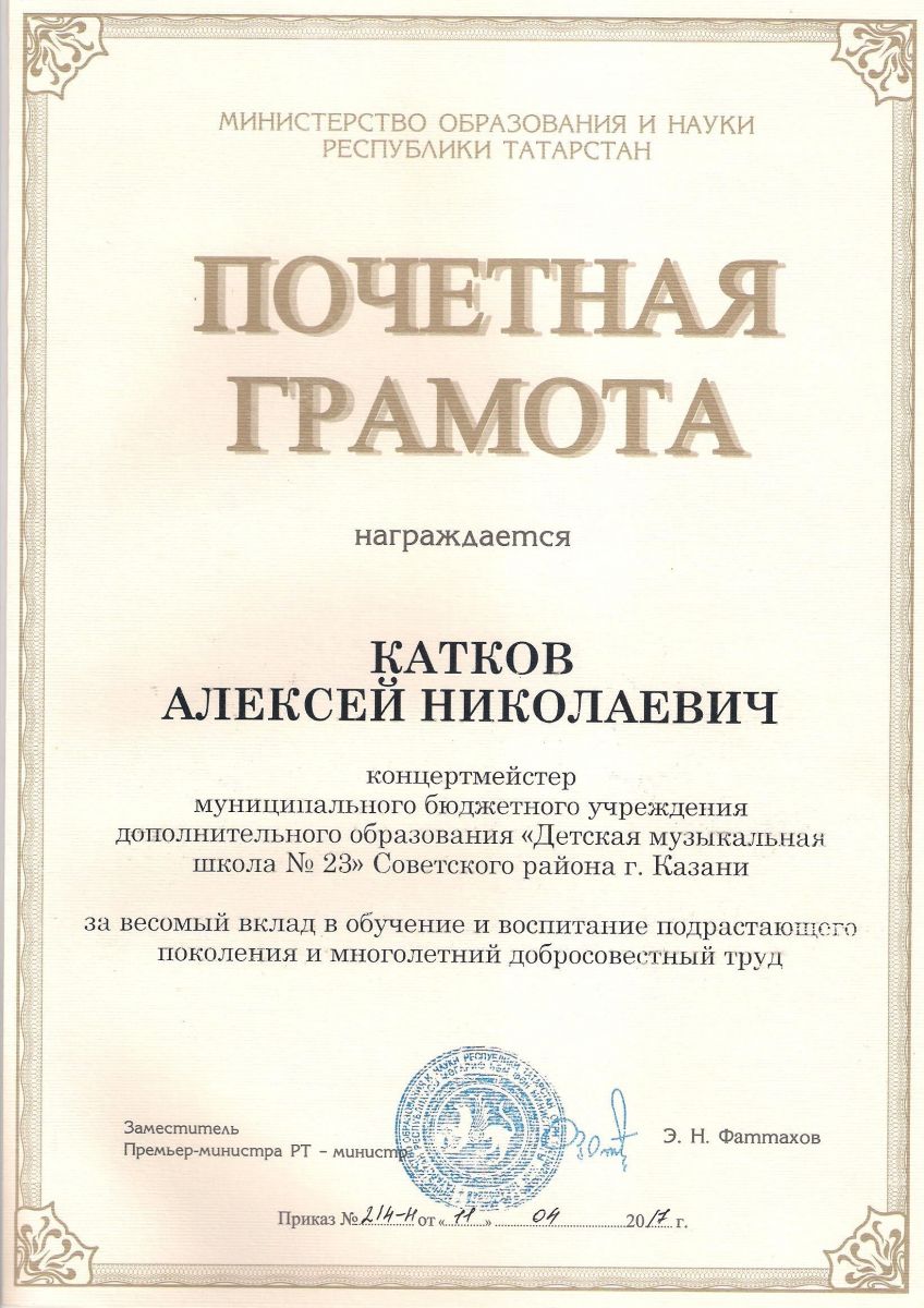Почётная грамота Министерства образования и науки Республики Татарстан - Катков А.Н.